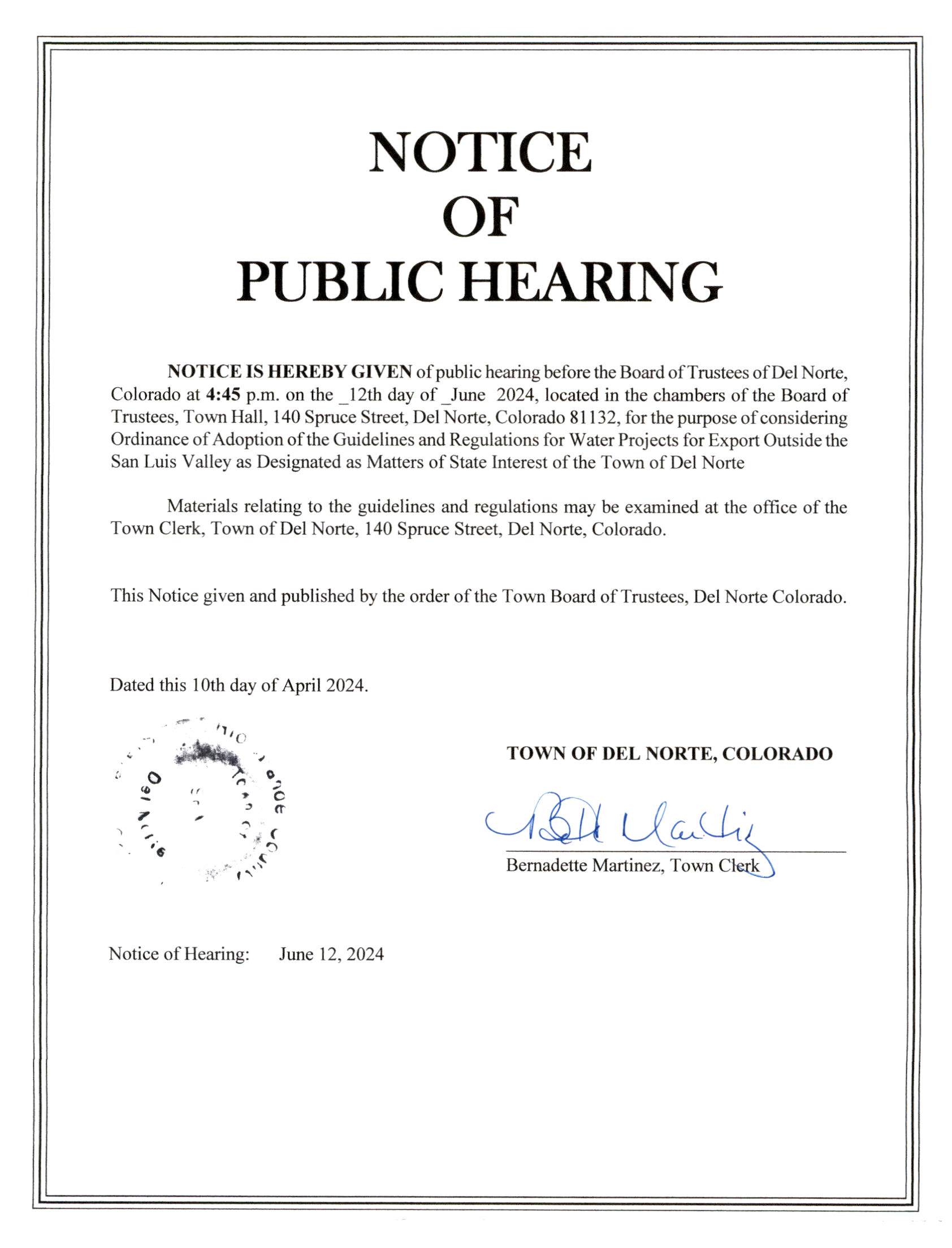 Town of Del Norte Public Hearing Agenda January 14, 2026